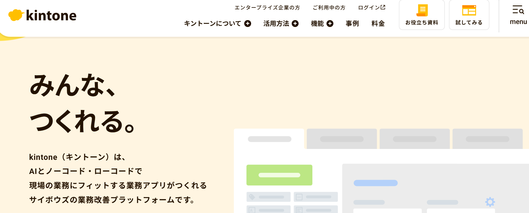 - 特徴: モバイルアプリ作成に強いノーコードツール。 現場での検品や見積もり算出に特化したスマホアプリを数分で作れるため、外回り営業のコスト削減ツールとして最適です。