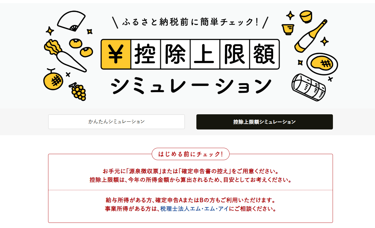 - 特徴: ふるさと納税の自己負担が2,000円で済む寄付上限額を算出。年収や家族構成を入力するだけで、節税効果を最大化するための目安を即座に提示します。